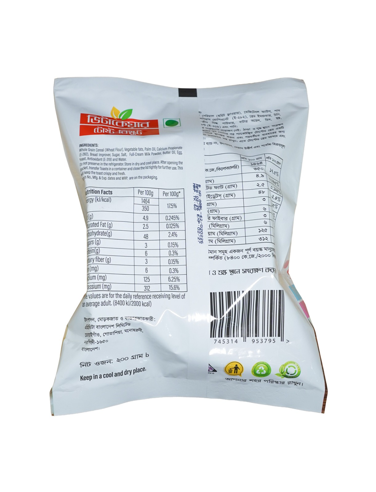 VitaCare Toast Biscuit-Classic 200g (6 Poly pack)