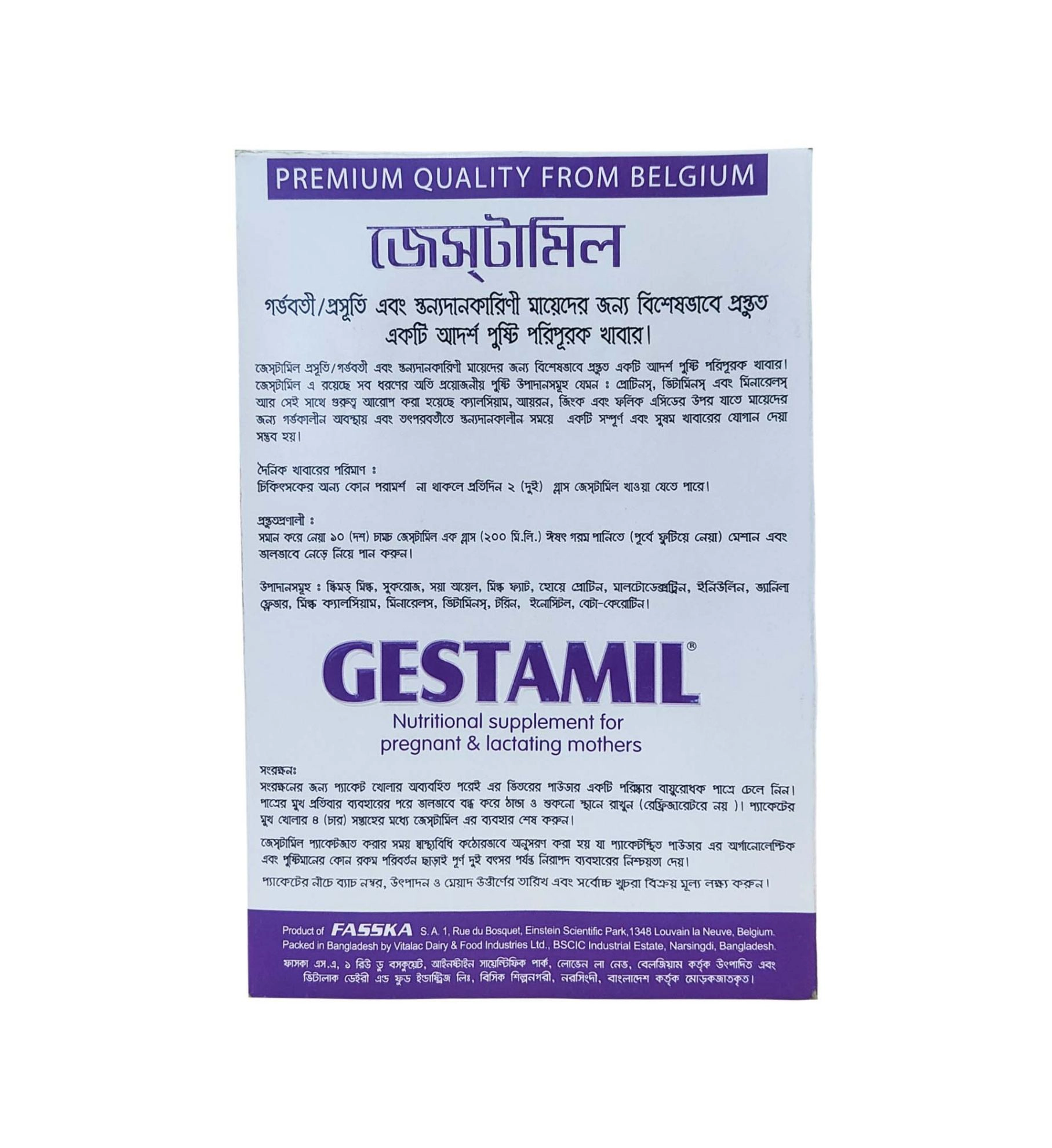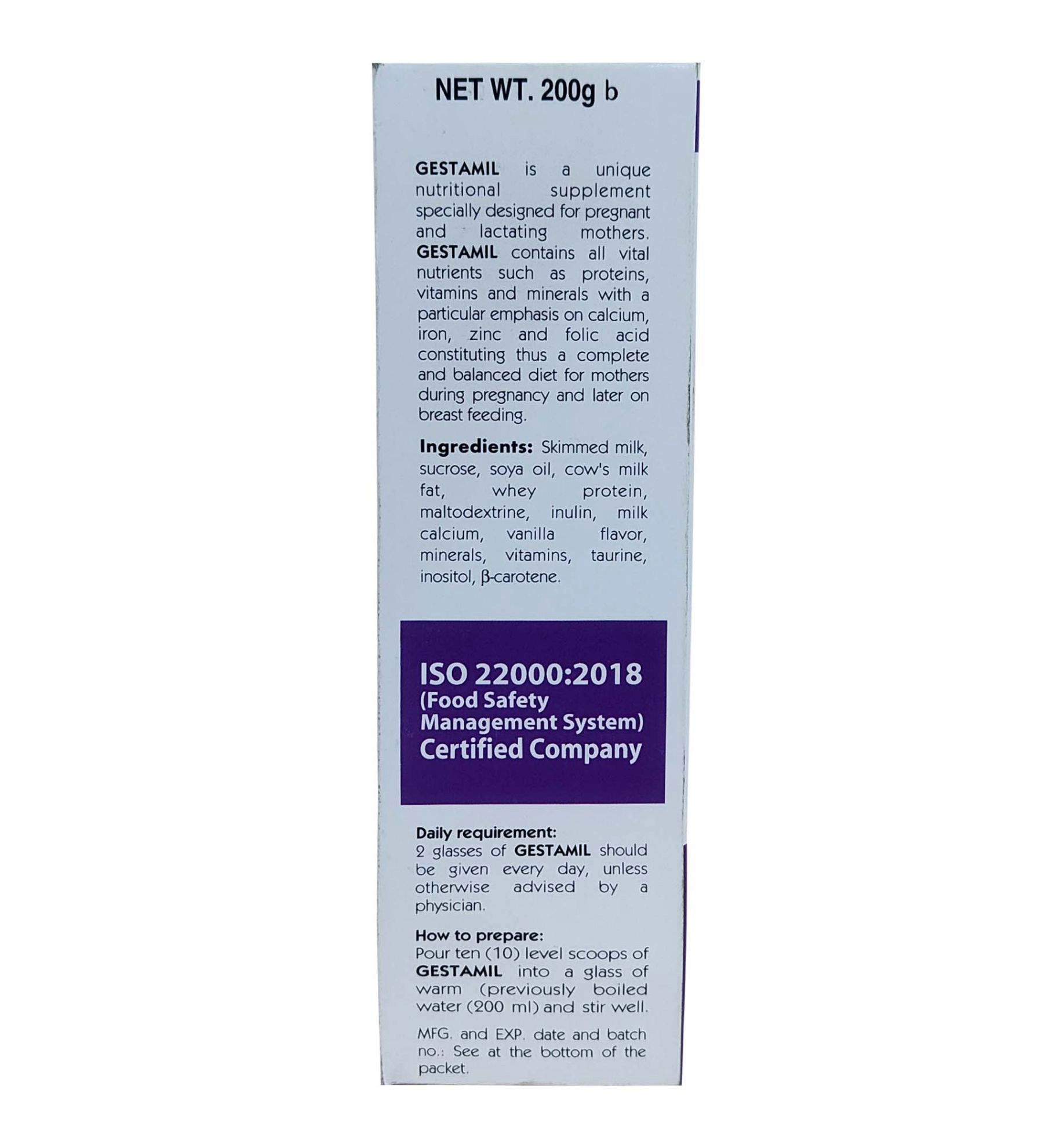 GESTAMIL is an ideal nutritional supplement specially designed for pregnant and lactating mothers. GESTAMIL contains all vital nutrients such as proteins, vitamins, and minerals, with a particular emphasis on calcium, iron, zinc, and folic acid, constituting a complete and balanced diet for mothers during pregnancy and later on breastfeeding.