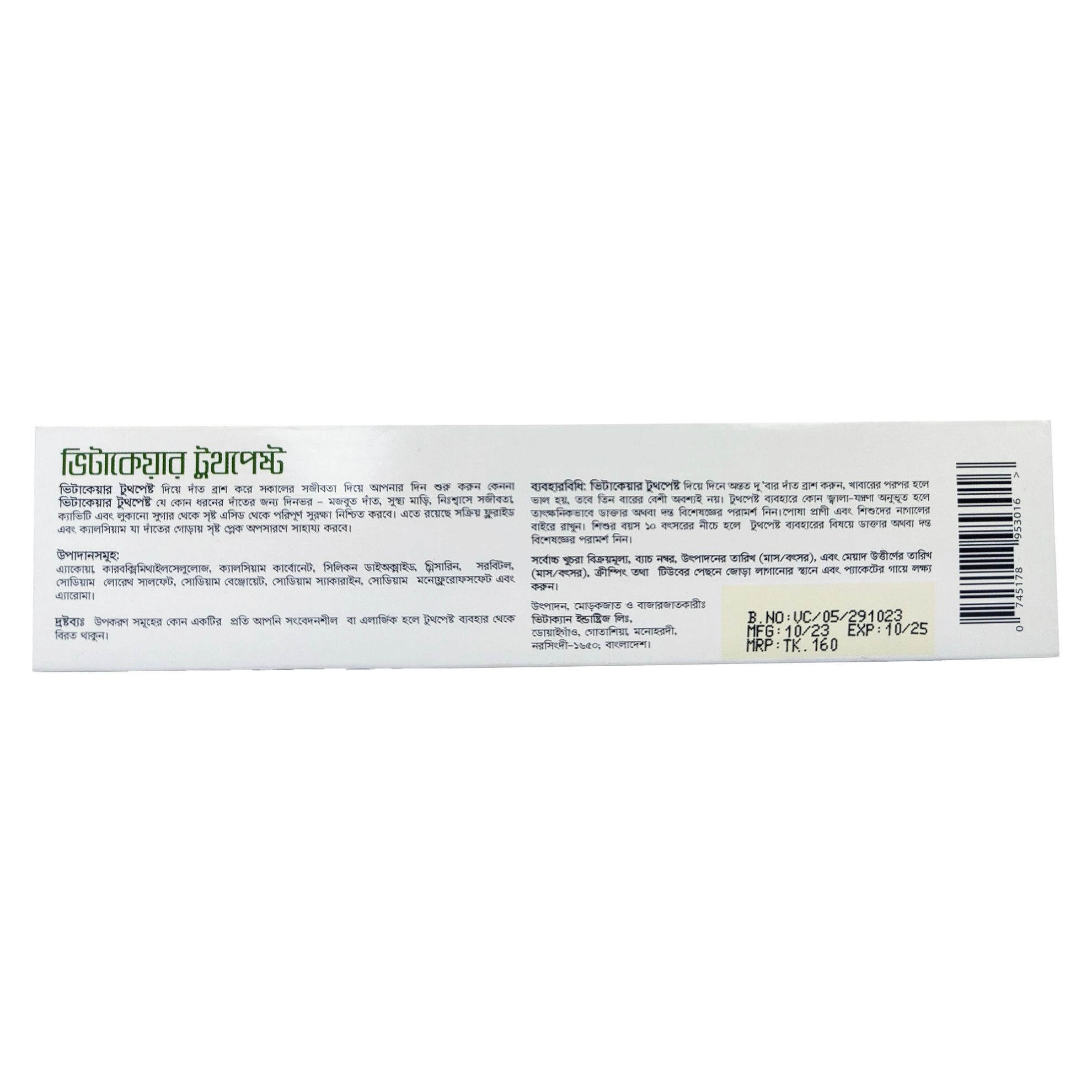 Looking for more than just a basic toothpaste? Vitacare Mint Freshness Toothpaste delivers on every front. It's not just about clean teeth — It’s designed for complete oral care. This powerful formula combines the trusted antibacterial strength of natural mint extract with the proven benefits of fluoride (930 ppm) and calcium; offering an effective enamel protection, cavity defence and a visibly whiter smile.